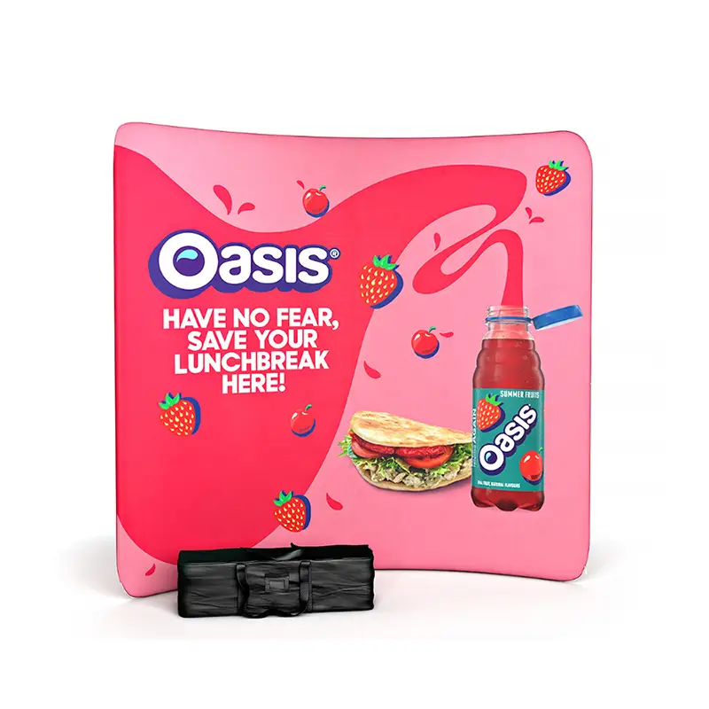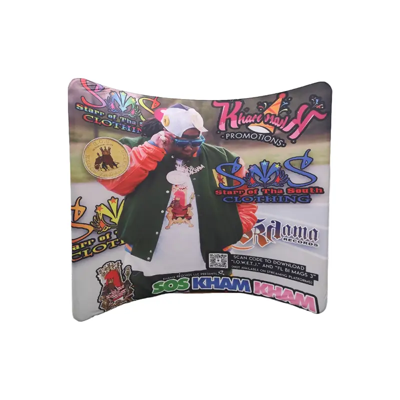 Išlenkto fono rėmas pagamintas iš tvirto, bet lengvo aliuminio lydinio rėmo ir didelės raiškos dažais sublimacijos atspausdinto tamprio megzto audinio, šis lankinis lenktas stovas pasižymi ir patvarumu, ir aukščiausios klasės vaizdiniais vaizdais. Audinys pasižymi ryškiomis, įbrėžimams atspariomis spalvomis, kurios itin aiškiai atgaivina sudėtingą dizainą. Jo lenkta struktūra sukuria vientisą, nesiglamžantį ekraną, o surinkimas be įrankių leidžia per kelias minutes sukurti profesionalų foną.